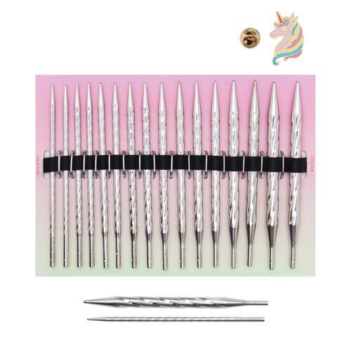 O estojo addiClick Unicorn Lace Long é um kit completo com pontas de tricô, cabos e acessórios intercambiáveis ??que são perfeitos para tricotar padrões de renda, bem como todos os tipos de outros projetos de tricô. Estas agulhas de tricô de alta qualidade são produzidas na Alemanha e atendem aos mais altos requisitos de qualidade da Addi. As ranhuras em espiral na ponta de cada agulha massageiam suavemente suas mãos enquanto você tricota, garantindo conforto e horas de diversão sem cansaço.