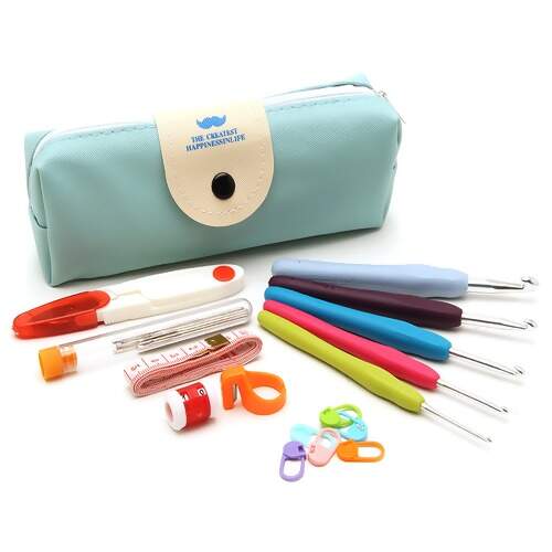 Estojo Agulha de Crochê e Acessórios Azul com 37 Und