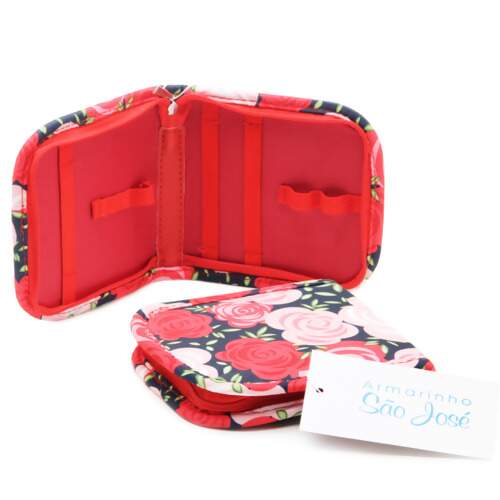 Descrição Estojo de Costura Pequeno Flor Vermelho