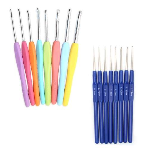- 8 Agulhas de Crochê com Cabo Plástico - Tamanhos (0,60mm, 0,75mm, 0,90mm, 1,10mm, 1,20mm, 1,50mm, 1,60mm, 1,75mm)