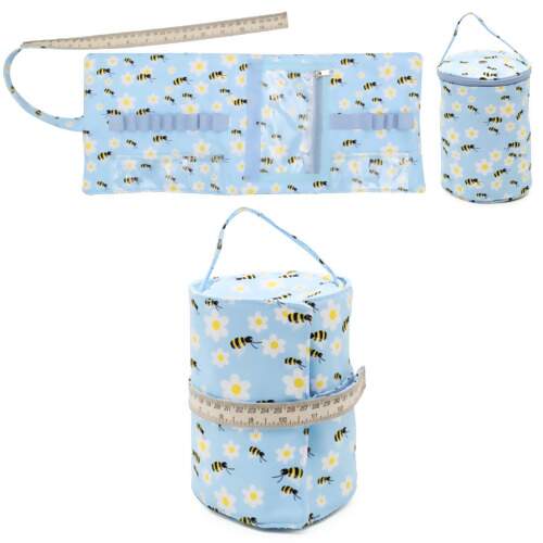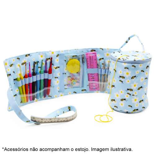 Estojo e Bolsa para Agulhas de Crochê, Acessórios e Fios Azul Abelhas