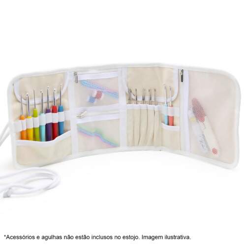 Descrição Estojo Organizador de Agulhas de Crochê e Acessórios Rosa