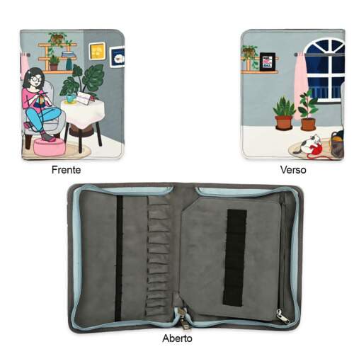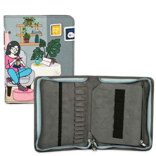 Aqui está a maneira inteligente de organizar e armazenar suas agulhas circulares intercambiáveis. O estojo com zíper pode armazenar até 24 pontas de agulha. O forro de camurça protege e um bolso interno com zíper contém vários cabos. De tamanho compacto para caber perfeitamente em um estojo ou bolsa de projeto, é ideal para o knitter em viagem.
