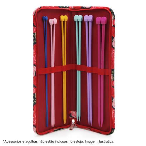 Acomoda agulhas de tricô até 40cm. Possui 13 divisões de agulhas.