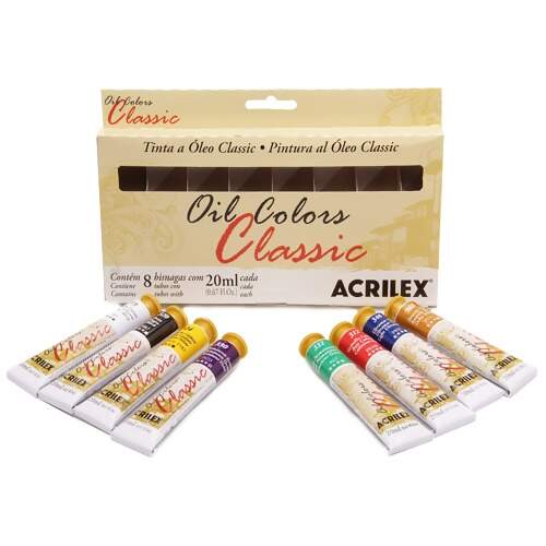 Tinta á óleo para pinturas artísticas em telas. Formulada com uma mistura de óleos e pigmentos selecionados, a Oil Colors Classic Acrilex apresenta excelente cobertura e consistência uniforme, oferecendo alta solidez à luz e maior resistência ao tempo.