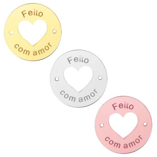 Etiqueta Acrílica Redonda Feito Com Amor 10 Und