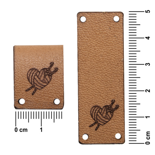 Etiqueta em Couro de Borda Retangular 5cm x 1,8cm 10 Und Novelo Coração