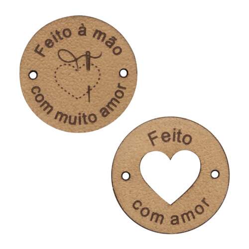 Detalhe Etiqueta em Couro Redonda 3cm 10 Und