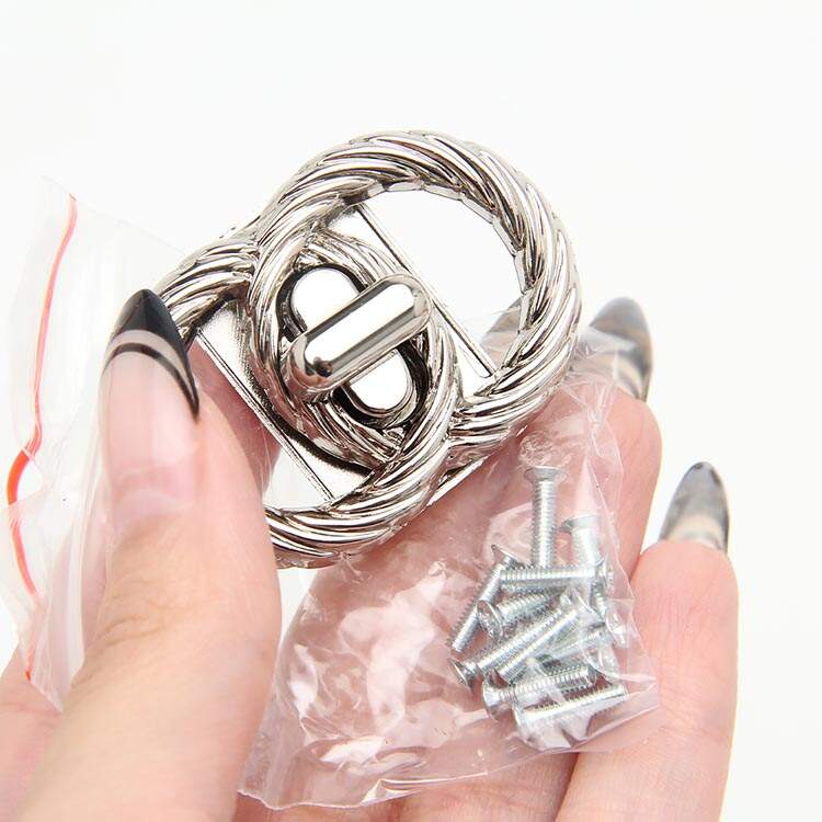 O Fecho de Metal Elos acrescenta elegância e segurança às bolsas. Disponível em preto, prata e dourado, é o acessório ideal para designs sofisticados. Fabricado em zinco, destaca-se pela praticidade na aplicação. Para abrir ou fechar, basta girar o mecanismo para encaixe perfeito.