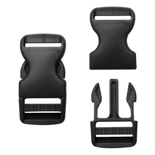 Os Fechos de 25mm são produzidos com plástico e possuem um espaço para passar uma alça de até 25mm (2,5cm).