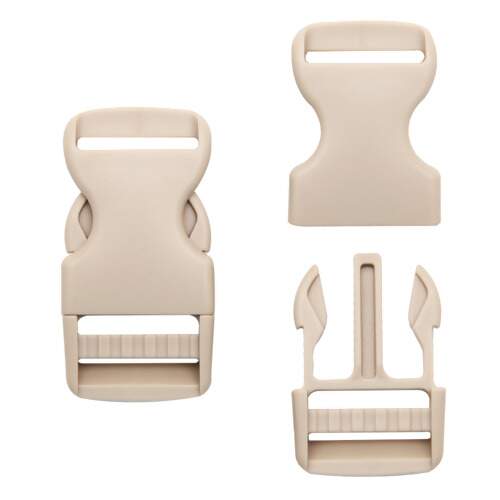 Os Fechos de 25mm são produzidos com plástico e possuem um espaço para passar uma alça de até 25mm (2,5cm).