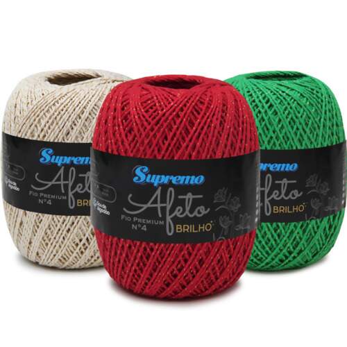Fio Afeto Premium Supremo N.04 Brilho 340m, a escolha ideal para artesãs que buscam qualidade, elegância e um toque de glamour em seus projetos. Com sua composição superior e um sutil brilho de lurex que realça cada ponto, este fio foi criado para transformar suas ideias em peças deslumbrantes.