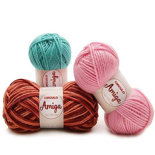 O fio Amiga é um acrílico clássico com espessura mais grossa, produzido para atender à solicitação do mercado. Possui cores: neutras, candys, intensas e mesclas. Esse fio é ideal para trabalhos com agulhas mais grossas, pontos volumosos e que exigem rapidez na finalização da confecção.