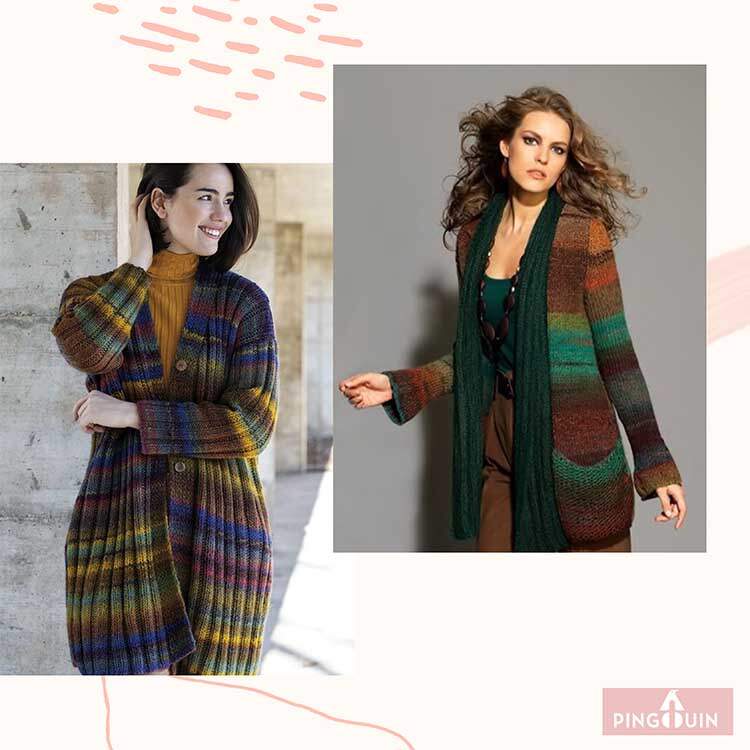 Tingimento com efeito listrado. Versátil. Blusas de inverno, casacos, cachecóis, golas, mantas e almofadas. Tanto para mulheres como para homens.