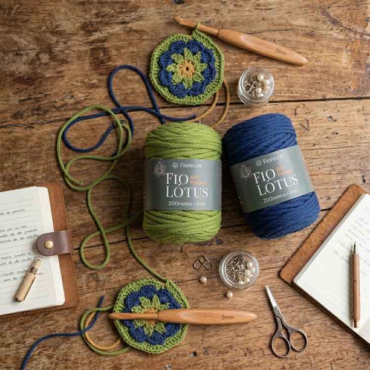 O Fio Lótus é ideal para diversos projetos artesanais, sendo perfeito para a criação de acessórios de moda e peças decorativas em tricô, crochê e macramê.