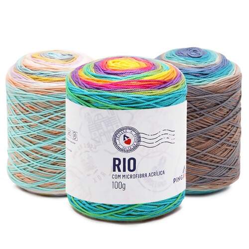 Rio é pura alegria, com microfibra acrílica! Um representante a altura da alma carioca. Fio leve com tingimento especial que cria padrões listrados em lindas cores. Indicado para peças mais frescas como blusas, vestidos e chales. Além de tudo isso, seus novelos formam lindas espirais de cores que chamam a atenção no ponto de venda.