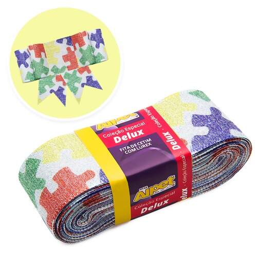 Descrição Fita de Cetim com Lurex Delux Alpet 40mm 4042-16 Quebra-Cabeça Autismo 10mts FL