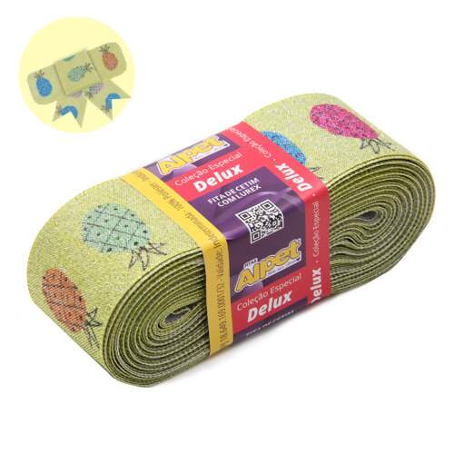 Detalhe Fita de Cetim com Lurex Delux Alpet 40mm S10 Abacaxi 10mts FL