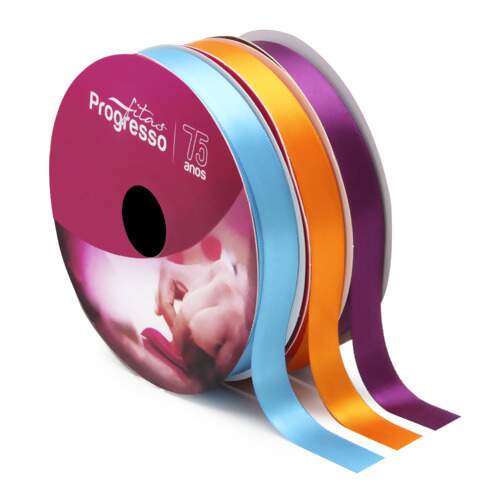 Fita de Cetim Progresso face simples. Ideal para artesanatos, decoração, laços, tiaras, bordados, embalagens e outros.