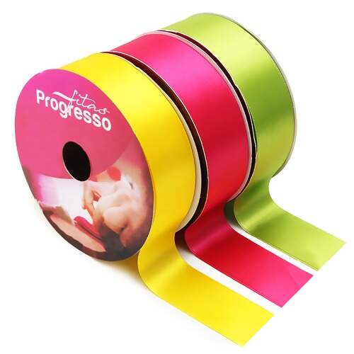 Fita de Cetim Progresso face simples. Ideal para artesanatos, decoração, laços, tiaras, bordados, embalagens e outros.