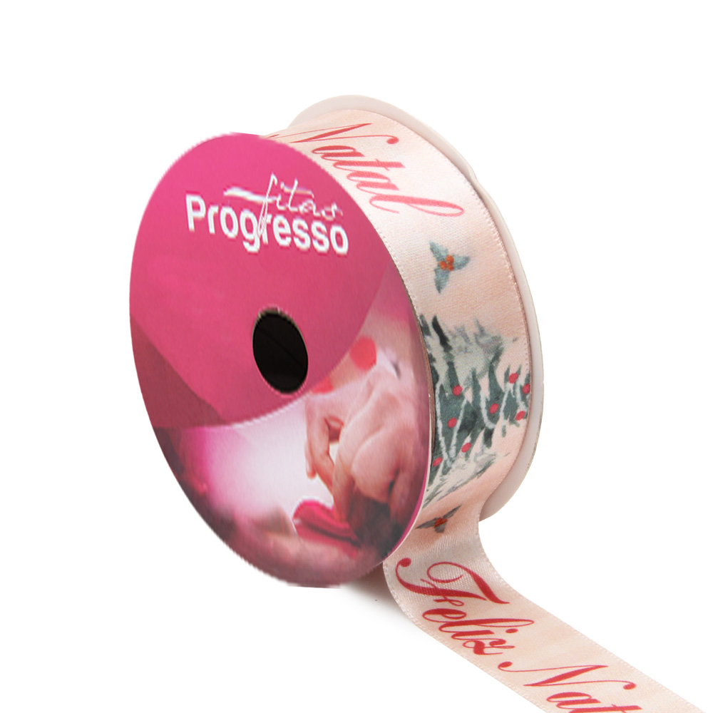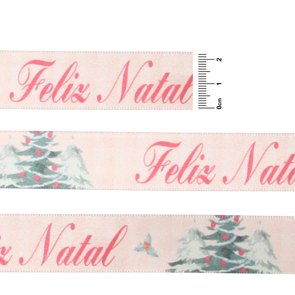 Detalhe Fita de Cetim Natal Progresso ECF005TR N.05 221 Pinheiro Feliz Natal 10mts
