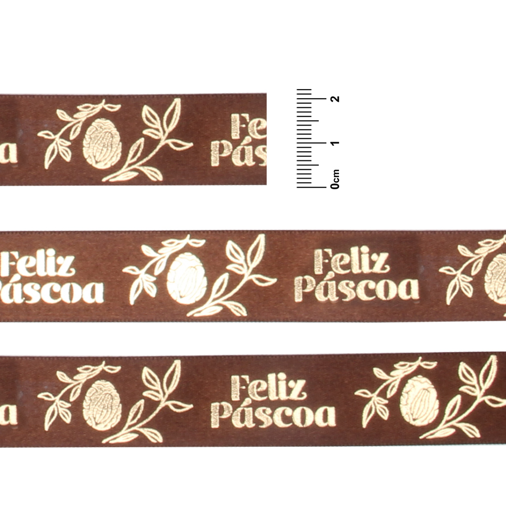 Detalhe Fita de Cetim Páscoa Progresso ECF005F N.05 027 Feliz Páscoa 10mts