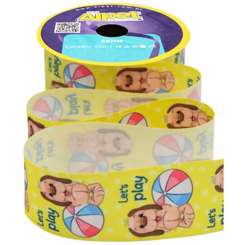 Detalhe Fita de Cetim Pet Alpet 40mm 3633-01 Lets Play com 10mts FL