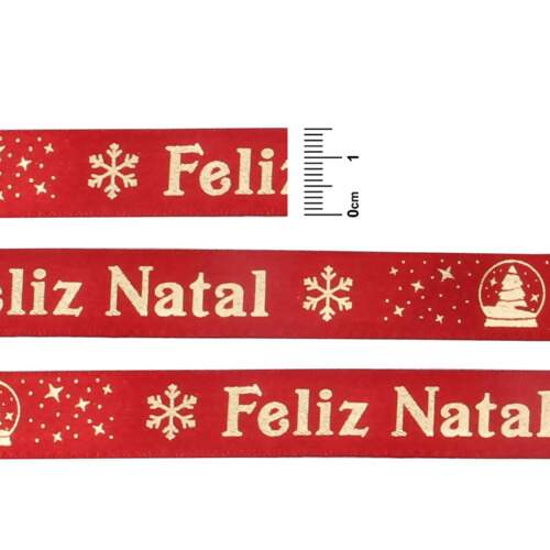 A Fita de Cetim Progresso N.03 505 Feliz Natal é perfeita para dar um toque especial às suas criações natalinas. Ela possui acabamento brilhoso, ideal para laços, lembrancinhas, embalagens de presentes, guirlandas e enfeites temáticos.
