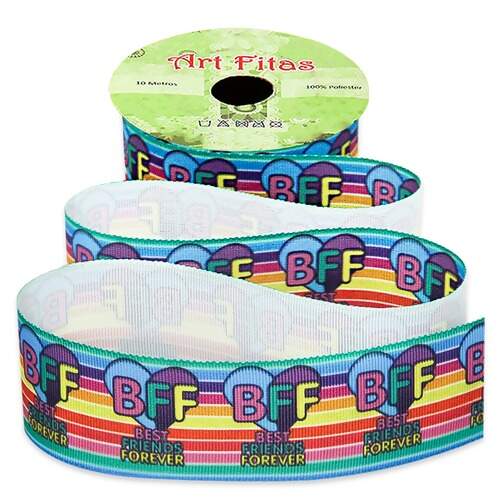 Descrição Fita de Gorgurão Art Fitas Ref.G2037 38mm Amigas BFF 10mts FL