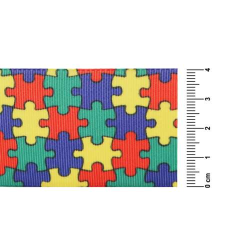 Detalhe Fita de Gorgurão Autismo Najar 381 N.09 01 Quebra-Cabeça 40mm com 10mts