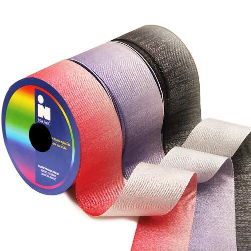 Fita de Gorgurão com Lurex Degradê Prata Najar R.438 N.09 40mm com 10mts