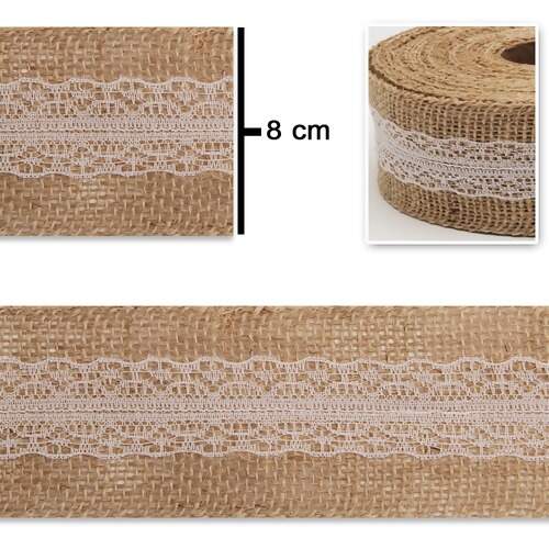 Detalhe Fita de Juta Trama Fechada c/Renda 4845 Cor-31 Natural 8 cm x 9,5mts - 1 unidade