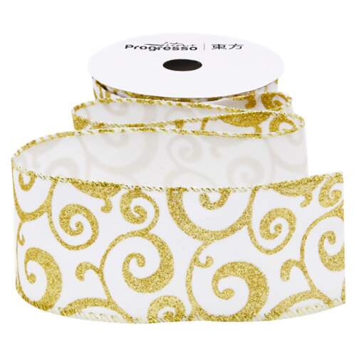 Descrição Fita de Natal Progresso Aramada Dourado Arabesco 001 63mm 10mts