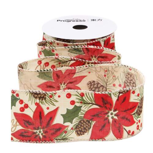 Fita de Natal Progresso Aramada Flor Natal 001 63mm 10mts