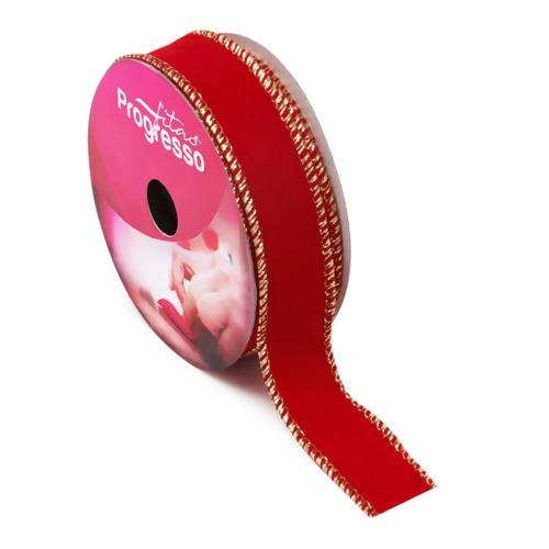 A Fita de Natal Progresso Aramada Veludo Vermelho 25mm é o toque final perfeito para transformar sua decoração natalina em um verdadeiro espetáculo de brilho e elegância. Com seu acabamento dourado metalizado, esta fita oferece flexibilidade e sofisticação para enfeitar árvores de Natal, guirlandas, presentes e muito mais.