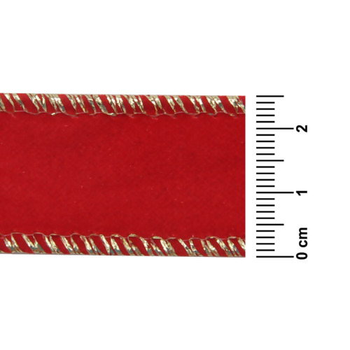 Detalhe Fita de Natal Progresso Aramada Veludo Vermelho 209 FC003 25mm 10mts