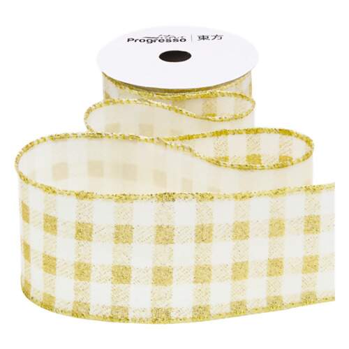 Descrição Fita de Natal Progresso Aramada Xadrez Dourado 203 63mm 10mts
