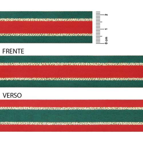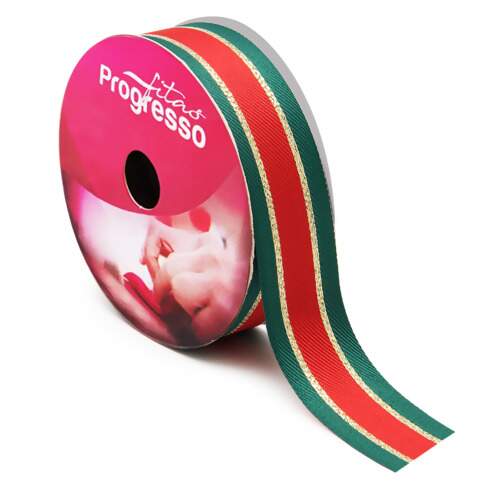 Descrição Fita de Natal Progresso N.05 Listrado Verde-Vermelho 01 LN005 22mm 10mts