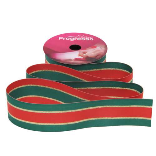 Descrição Fita de Natal Progresso N.07 Listrado Verde-Vermelho 01 LN007 30mm 10mts