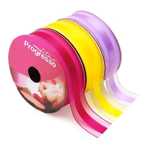 Fita de Voal com Cetim Progresso com transparência nas bordas. Ideal para artesanatos, decoração, laços, tiaras, bordados, embalagens e outros.
