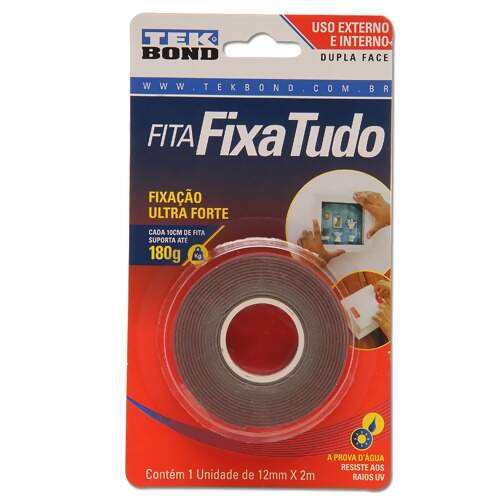 Descrição Fita Fixa Tudo Acrílica Tek Bond Dupla Face Cinza - 12mm x 2 mts ( Uso Externo e Interno)