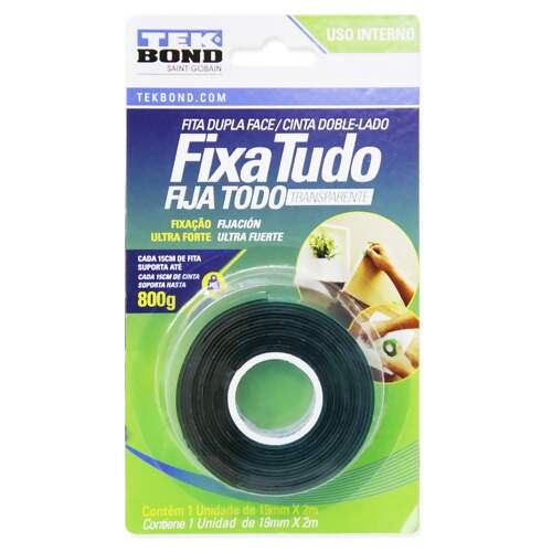 Descrição Fita Fixa Tudo Acrílica Tek Bond Dupla Face Transparente - 19mm x 2 mts ( Uso Interno)