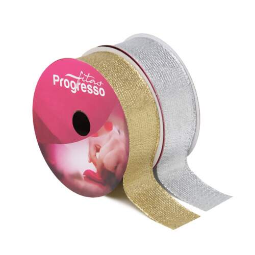 A Fita Metalizada Progresso M004-025 25mm é perfeita para dar um toque de brilho e sofisticação aos seus trabalhos manuais e decorações. Ela possui acabamento reluzente que valoriza laços, embalagens de presentes, arranjos, artesanato e peças decorativas.