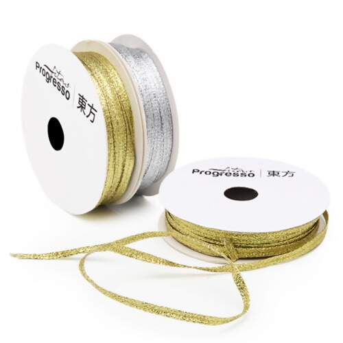 A Fita Metalizada Progresso é perfeita para dar um toque de brilho e sofisticação aos seus trabalhos manuais e decorações. Ela possui acabamento reluzente que valoriza laços, embalagens de presentes, arranjos, artesanato e peças decorativas.