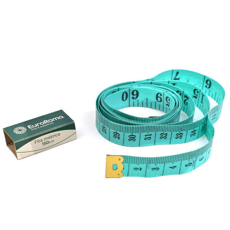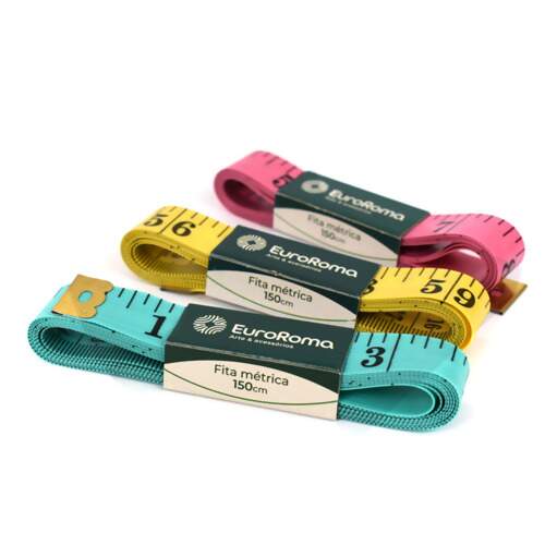 Fita métrica EuroRoma desenvolvida para garantir medições precisas em costura, modelagem e diversos trabalhos artesanais. Flexível e fácil de manusear, adapta-se perfeitamente a superfícies retas e curvas, tornando-se um item essencial no ateliê.