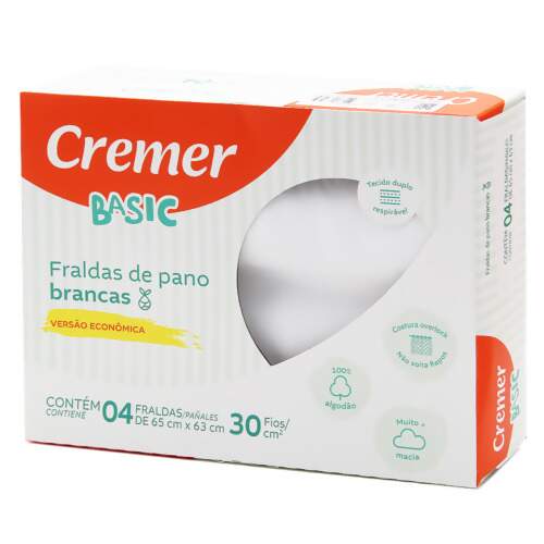 Descrição Fralda Cremer Basic Branca 65cmx63cm com 4 Und