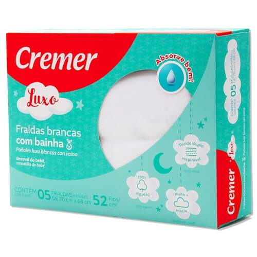 Descrição Fralda Cremer Luxo com Bainha 70x68cm com 5 Und