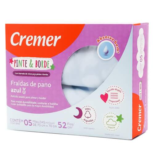 Descrição Fralda Cremer Pinte e Borde Azul 70x70cm com 05 Und