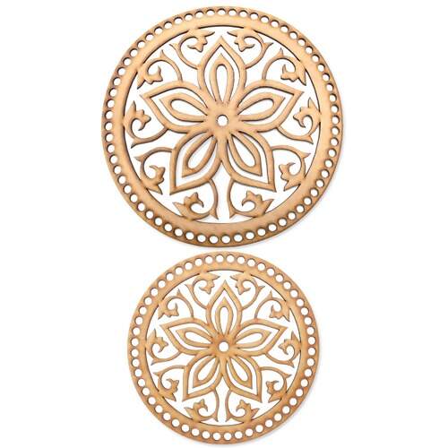 Produto fabricado em MDF Cru cortada a laser. Usado para fundo de trabalhos feitos em crochê, como vasos, bolsas, cestos, etc...