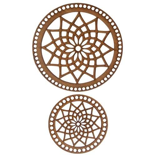 Produto fabricado em MDF cortada a laser. Usado para fundo de trabalhos feitos em crochê, como vasos, bolsas, cestos, etc...
